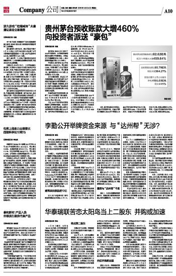 华泰瑞联苦恋太阳鸟当上二股东 并购或加速 2016-03-24 来源:证券时报网 作者:邢云