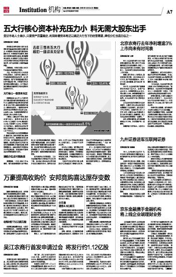 五大行核心资本补充压力小 料无需大股东出手受访市场人士表示,只要资产质量稳定,利润转增资本将足以满足大行当下的经营需要,降低分红也是办法之一 2016-03-24 来源:证券时报网 作者:马传茂
