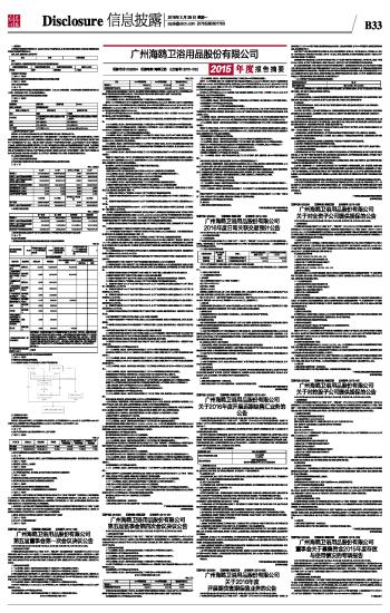 广州海鸥卫浴用品股份有限公司2015年度报告摘要 2016-03-28 来源:证券时报网 作者: