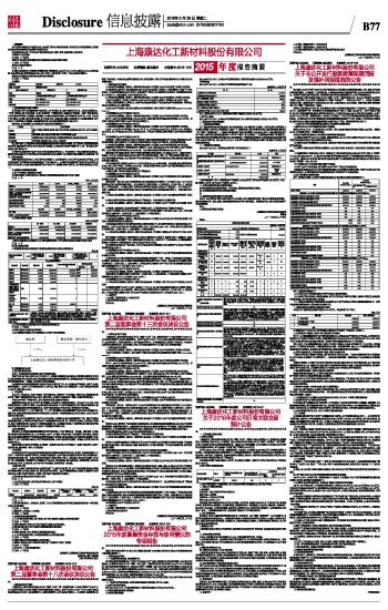 上海康达化工新材料股份有限公司2015年度报告摘要 2016-03-29 来源:证券时报网 作者:
