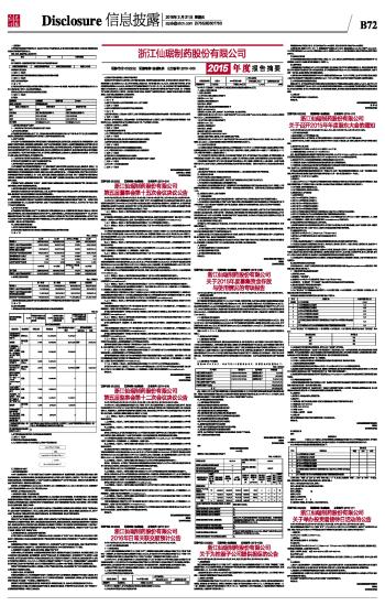 浙江仙琚制药股份有限公司2015年度报告摘要 2016-03-31 来源:证券时报网 作者: