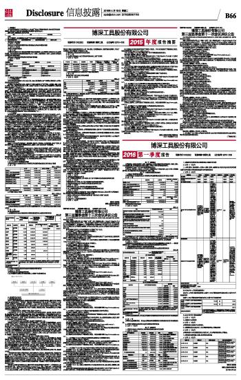博深工具股份有限公司2016第一季度报告 2016-04-19 来源:证券时报网 作者: