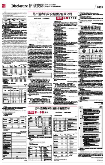 苏州道森钻采设备股份有限公司2015年度报告摘要 2016-04-23 来源:证券时报网 作者: