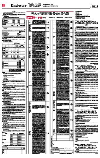 天水众兴菌业科技股份有限公司2016第一季度报告 2016-04-23 来源:证券时报网 作者: