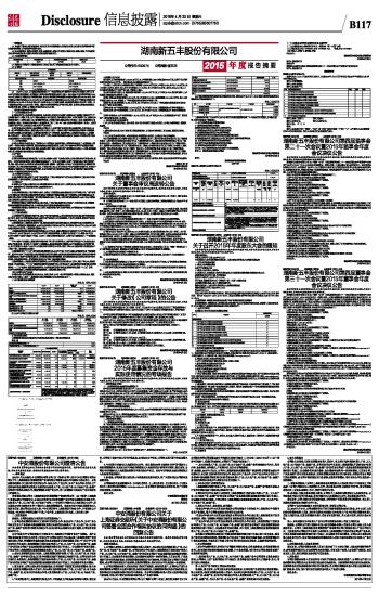 湖南新五丰股份有限公司2015年度报告摘要 2016-04-23 来源:证券时报网 作者:
