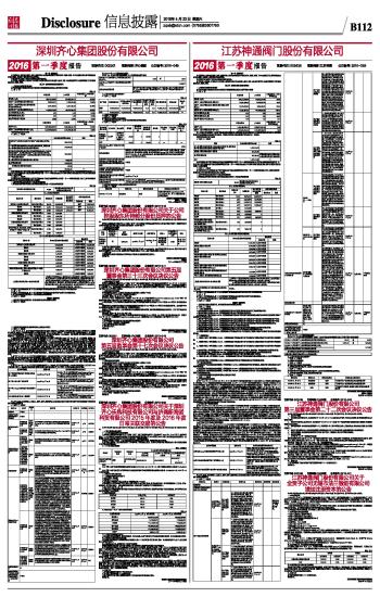 深圳齐心集团股份有限公司2016第一季度报告 2016-04-23 来源:证券时报网 作者: