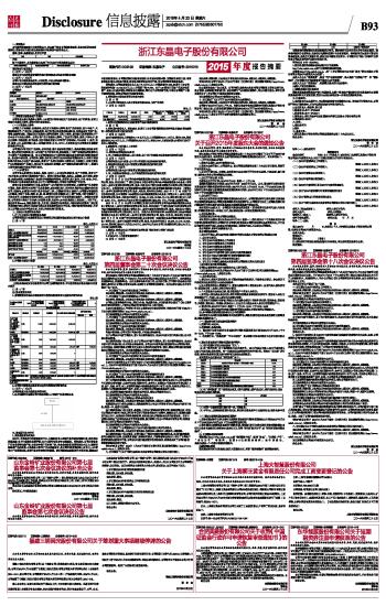 浙江东晶电子股份有限公司2015年度报告摘要 2016-04-23 来源:证券时报网 作者:
