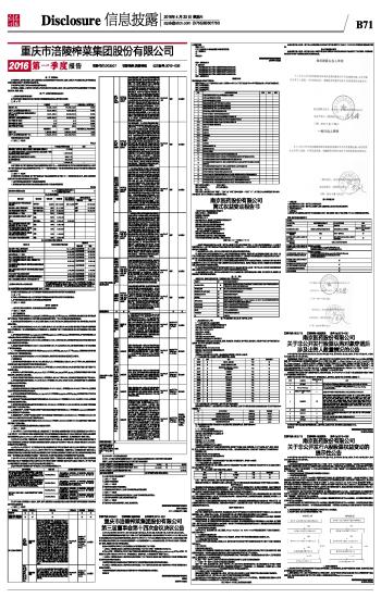 重庆市涪陵榨菜集团股份有限公司2016第一季度报告 2016-04-23 来源:证券时报网 作者: