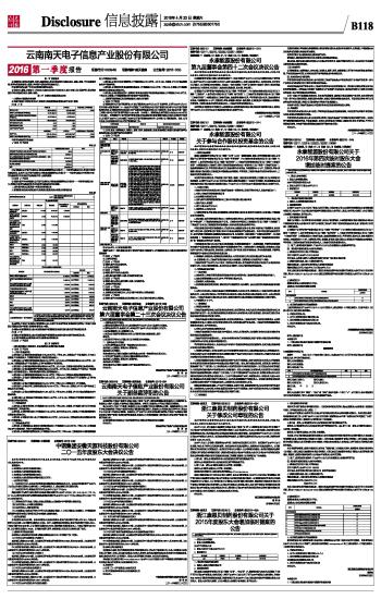 云南南天电子信息产业股份有限公司2016第一季度报告