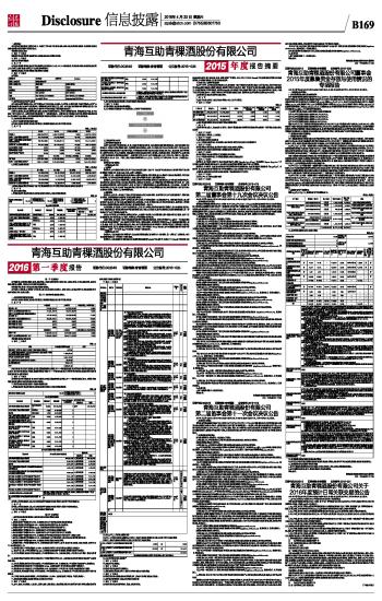 青海互助青稞酒股份有限公司2015年度报告摘要