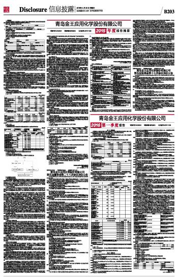 青岛金王应用化学股份有限公司2015年度报告摘要