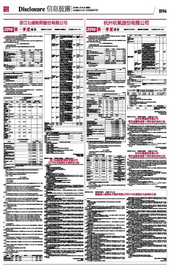浙江仙琚制药股份有限公司2016第一季度报告