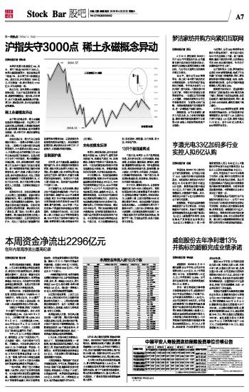 沪指失守3000点 稀土永磁概念异动